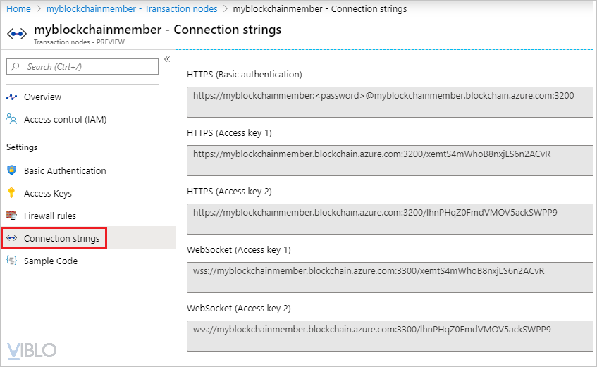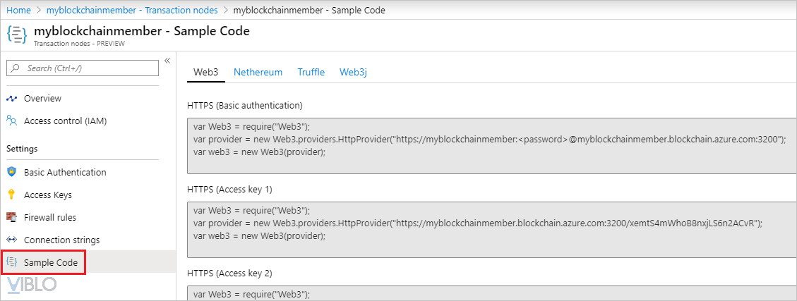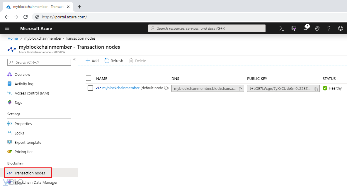 Các Transaction nodes được sử dụng để gửi các transactions đến Azure Blockchain Service thông qua một public endpoint. Để view transaction node sẽ làm như sau
