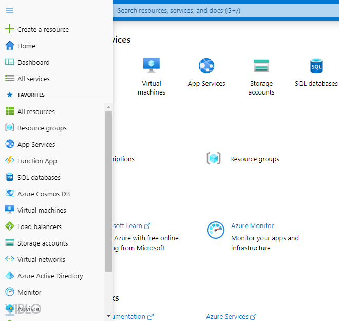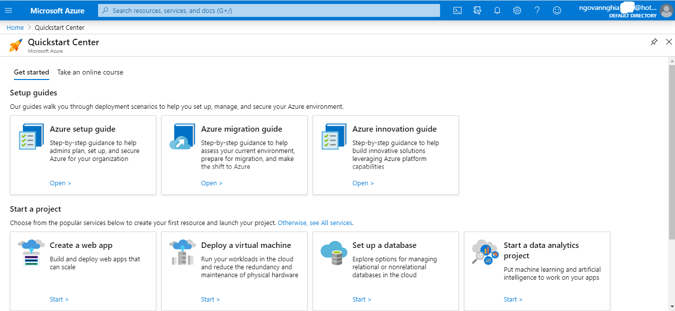 - Chọn Create a resource ở góc trên bên trái của Azure portal