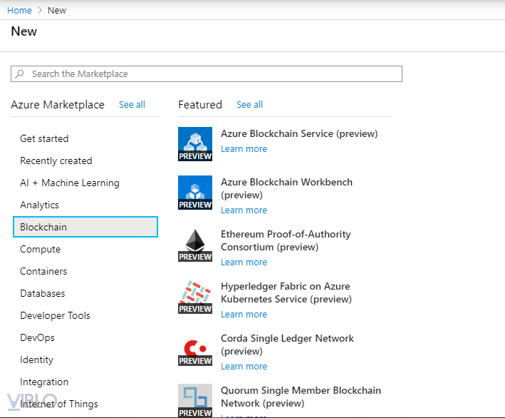 - Chọn Blockchain > Azure Blockchain Service (preview)