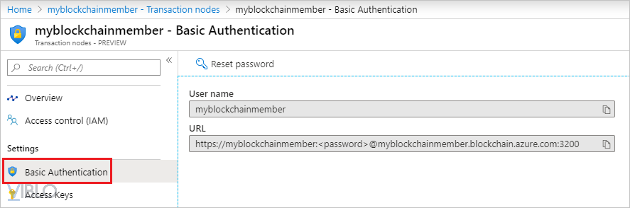 User name là tên của node và không thể thay đổi được. Trong URL sẽ thay thế <password> với password của node và có thể thay đổi mật khẩu bằng cách chọn Reset password