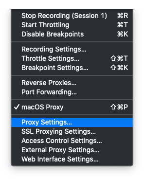 Sau khi enable macOS Proxy cho Charles, dấu tick sẽ xuất hiện bên cạnh mục View > macOS Proxy như thế này: