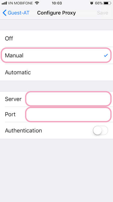 Khi bạn chọn debug app của bạn trên real device cùng với Charles, bạn cần phải trỏ HTTP Proxy của device đến máy tính mà bạn đang sử dụng. Lưu ý: Máy tính và điện thoại của bạn phải xài cùng wifi. Config cho device như sau: