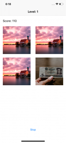 Như bạn có thể nhận thấy, việc ghi điểm không còn hoạt động nữa. Trước đây, điểm số của bạn được đếm trong khi bạn chọn đúng hình ảnh, bây giờ nó chỉ nằm ở đó. Bạn sẽ rebuild chức năng hẹn giờ đó, nhưng với Combine!