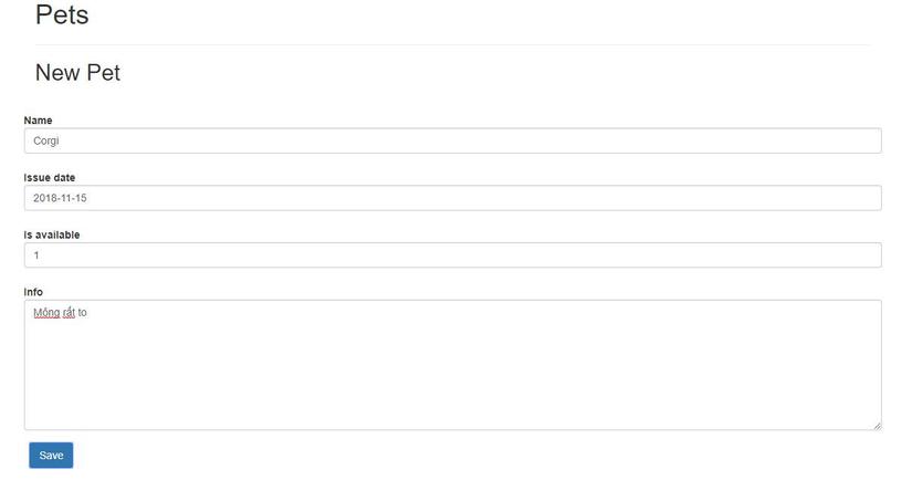 Mục tiêu của mình sẽ là tạo một trang demo để quản lý thú cưng. Với mỗi con thú cưng, bạn muốn nắm rõ được thông tin về: