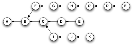 $ git rebase <rebase_branch>- Nó thực hiện bằng cách đi tới commit cha chung của hai nhánh (nhánh bạn đang làm việc <working_branch> và nhánh đang muốn rebase <rebase_branch>), tìm sự khác biệt trong mỗi commit của nhánh mà bạn đang làm việc, lưu lại các thay đổi đó vào một tập tin tạm thời, khôi phục lại nhánh hiện tại về cùng một commit với nhánh bạn đang rebase, và cuối cùng áp dụng lần lượt các thay đổi.