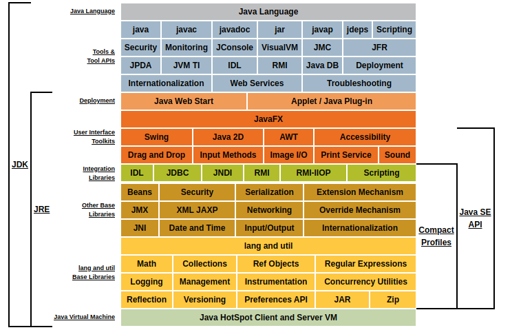 Ngày nay, khi nhắc đến Java người ta không còn chỉ nhắc đến Java như là một ngôn ngữ mà nhắc đến Java như là một công nghệ hay một nền tảng phát triển. Nó bao gồm các bộ phận: