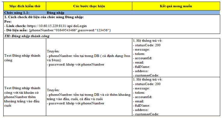 - Thiết lập môi trường kiểm thử API với tập hợp các tham số cần thiết của API.