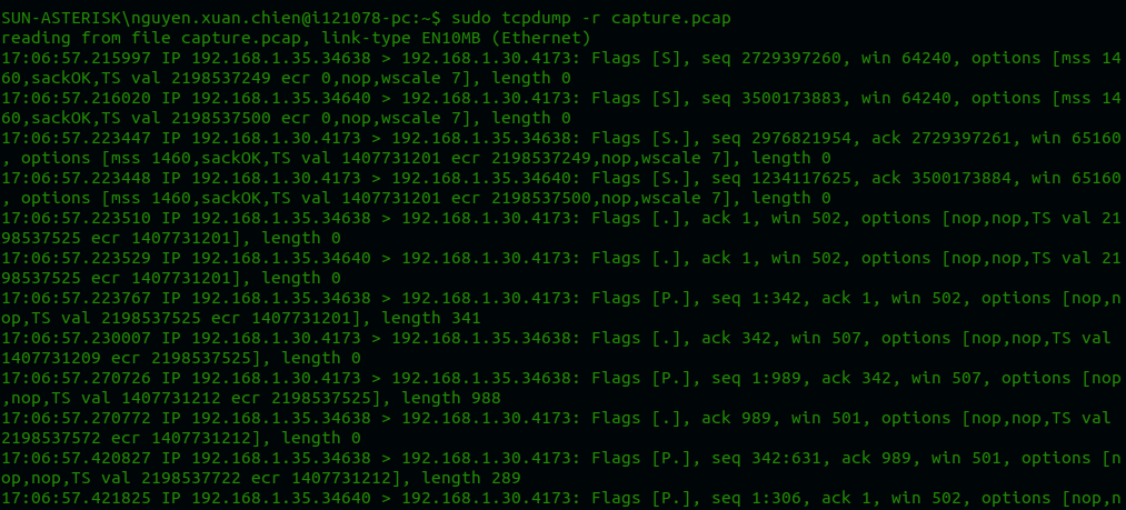 - r: Đọc và hiển thị file PCAP