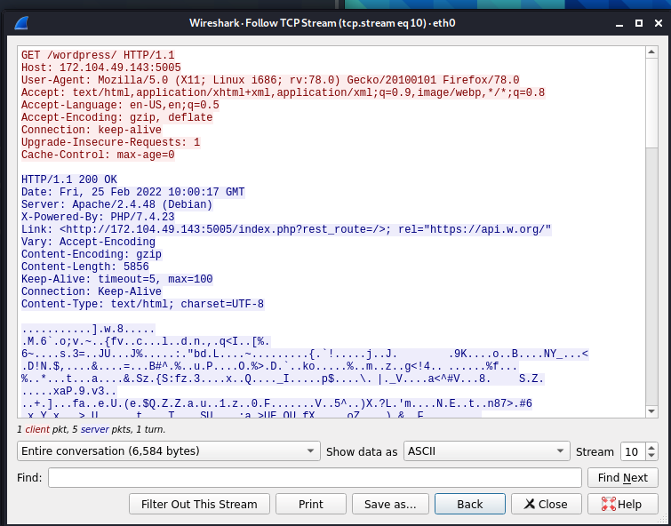 Ta có thể follow theo giao thức UDP, TCP. Như hình ở dưới ta có thể bắt được request gửi tới địa chỉ của 1 trang wordpress.