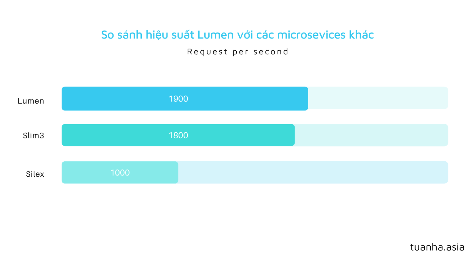 Mục đích của Lumen được tạo ra để phát triển hệ thống microservice nên tốc độ được đánh giá rất cao. Mặt khác việc thay thế Symfony router bằng Fast Router – một thư viện router được phát triển bởi Nikita Popov nên hiệu suất cũng được cải thiện.