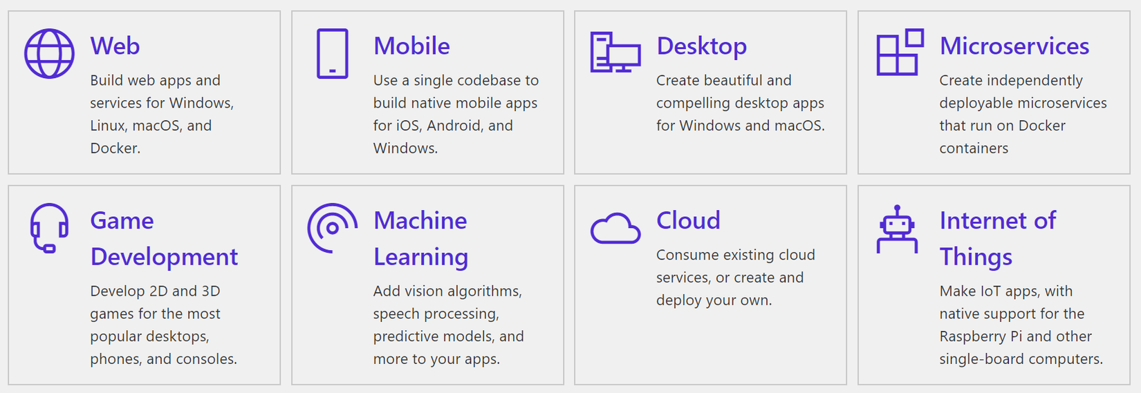 Với .Net thì các bạn có thể sử dụng các ngỗn ngữ .Net (như: C#, F#, or Visual Basic), editors(như: Visual studio, Visual Studio Code...), các thư viện để viết các ứng dụng .Net (như: web, mobile, desktop, games, và IoT...) và một số ứng dụng .Net là đa nền tảng, một số ứng dụng thì hoạt động trên 1 hệ điều hành hoặc 1 .NET implementations (Mình tạm dịch là .1 triển khai của .Net). Cụ thể: