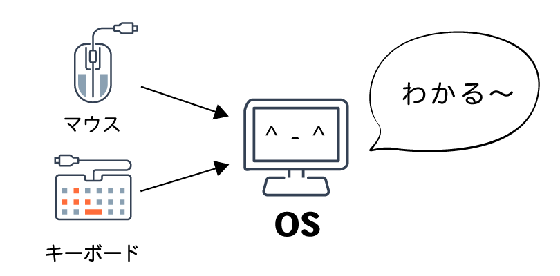 Đối với thao tác keyboard hay thao tác chuột, thì OS sẽ quản lý những cái như "Đã nhấn vào keyboard nào" "Đã di chuột đi chừng nào" "Có phải đã nhấn vào button trái trên mouse không" bla bla...