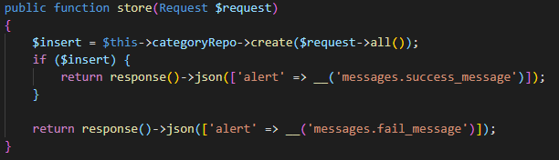 Như vậy là các bạn đã khai báo Repository thành công, bước tiếp theo, bạn vào Controller để sử dụng các Repository đã tạo. Mình ví dụ ở CategoryController(các bạn cần tạo CategoryController)