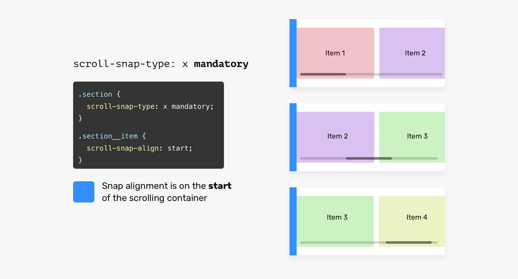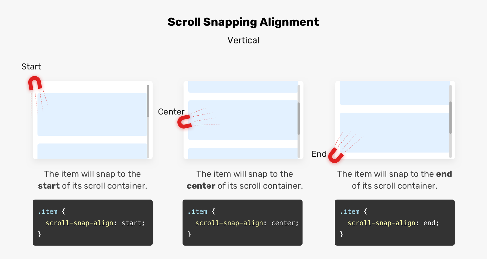 snaptheo từng điểmscroll, giả sửscroll-snap-alignlàstartthì trình duyệt sẽscrolltheo hướng bắt đầu củacontainer![]()