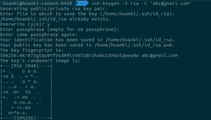 ssh-keygen -t rsa -C "hoanki2212@gmail.com"