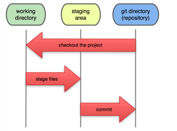 Git directory: nơi lưu trữ mã nguồn của bạn (ở đây là github) Tương ứng với 3 vị trí này ta có các hành động cơ bản như: