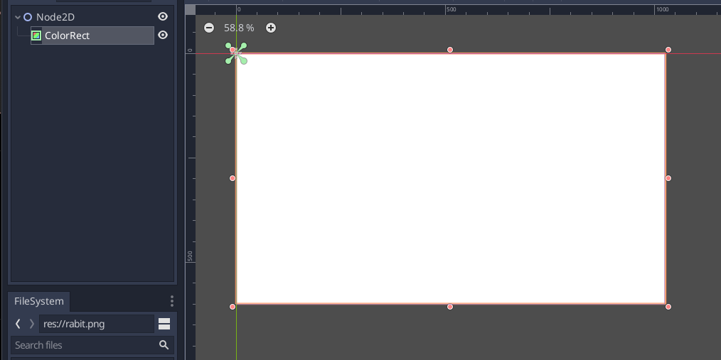 Đầu tiên các bạn có thể tạo 1 project mới, sau đó tạo 1 node2D có ColorRect như sau: