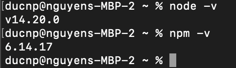 - Sau khi cài đặt xong thì kiểm tra node -v , nếu hiển thị ra được kết quả như này là ok: