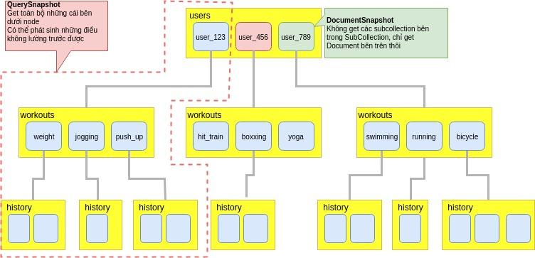Ở version trước của FileStore (RealtimeDatabase) thì vẫn chưa có khái niệm SubCollection. Nhưng ở Cloud FileStore thì đã có thể setup được SubCollection, giúp cho cấu trúc data có thể đối ứng được với những yêu cầu phức tạp hơn rất nhiều