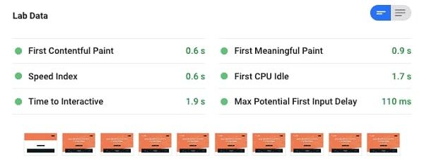 Điểm tốc độ Page Speed này dựa trên số liệu lấy ra từ phòng thí nghiệm của Lighthouse. Chúng ta sẽ tìm hiểu kĩ hơn về cách tính số liệu này trong những phần sau.