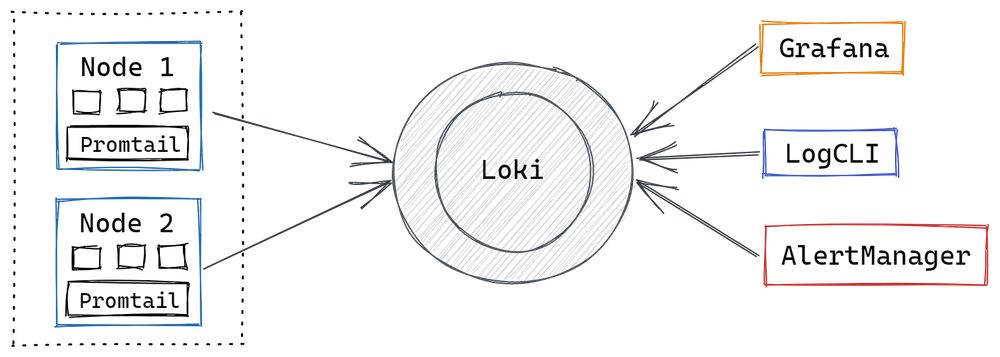 Hiểu đơn giản thì Loki sẽ tự động nhặt nhạnh log từ các pod, container... và đưa chúng lên bảng điều khiển Grafana. Thế là chúng ta chỉ cần vào dashboard là đã có thể xem được mọi thông tin cần thiết rồi. Và mỗi khi deploy pod hoặc container mới, không cần setup gì thêm, Loki tự động nắm bắt!