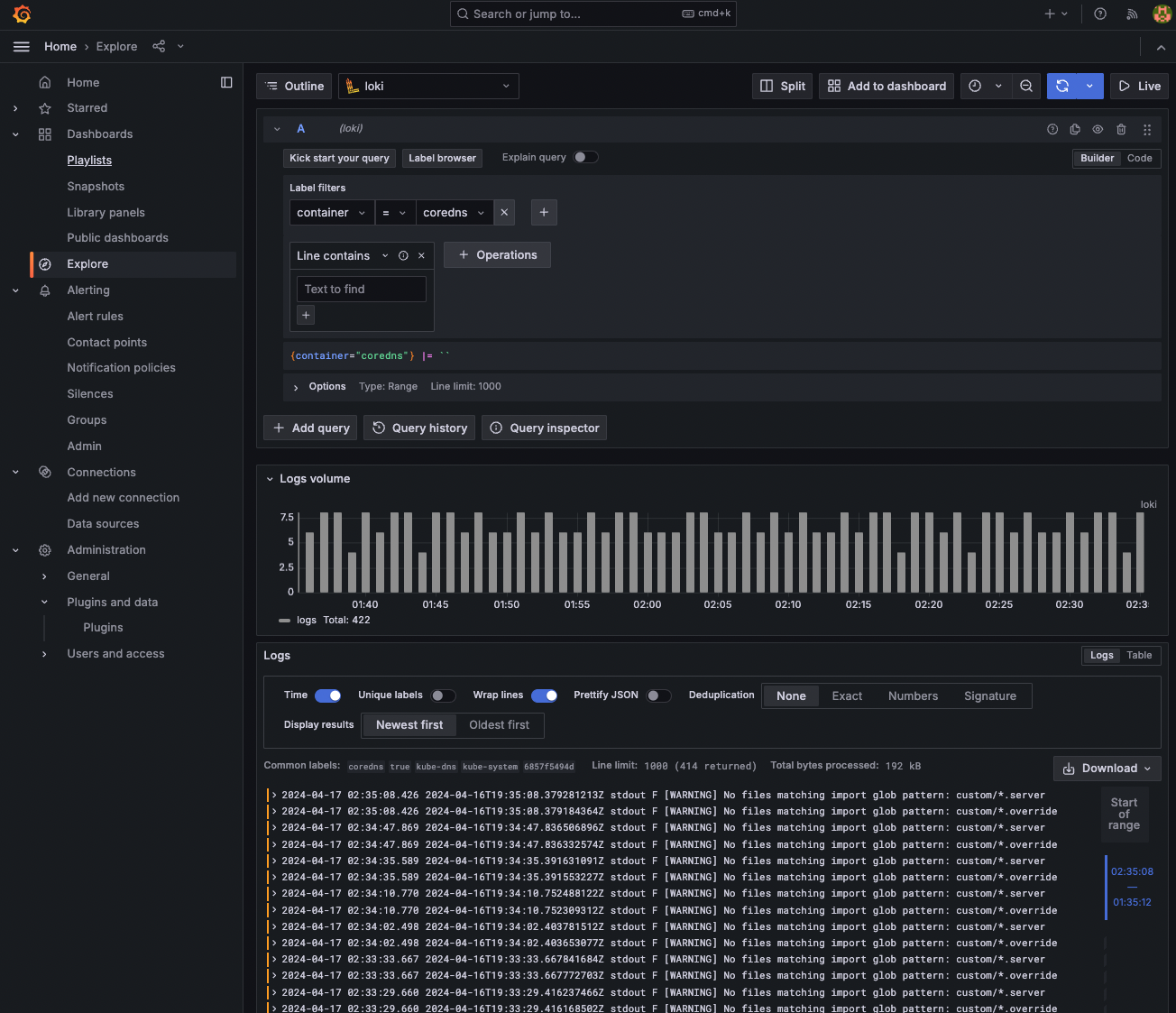 Sau đó bạn vào Explore và chọn vào datasource là Loki và query thử nhé
