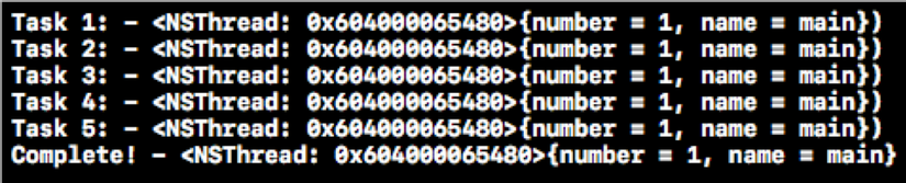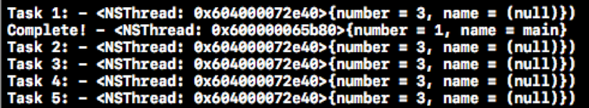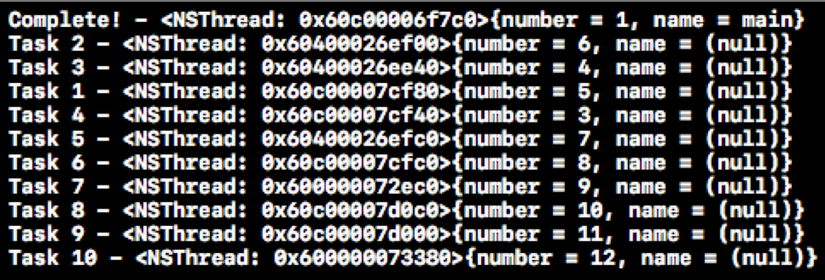 Ở ví dụ 10 tasks được đánh dấu là async được gửi vào trong concurrent queue. Queue này sẽ dựa vào tài nguyên hệ thống để tạo ra số threads để thực thi các tasks này. ![]() Kết quả xử lý async tasks trong concurrent queue: ![]()