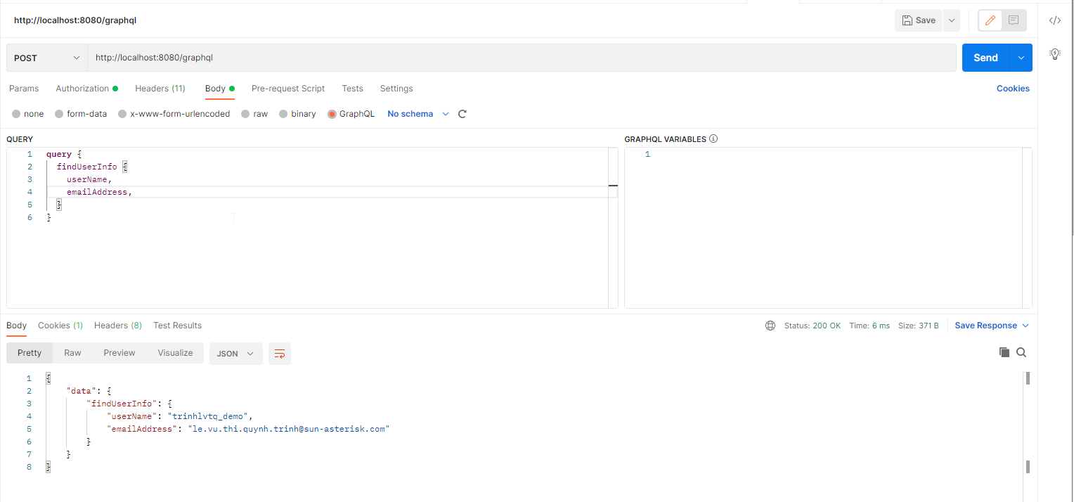 Sau khi start source code, mình sẽ test API của mình bằng cách dùng graphiql với địa chỉ http://localhost:8080/graphiql