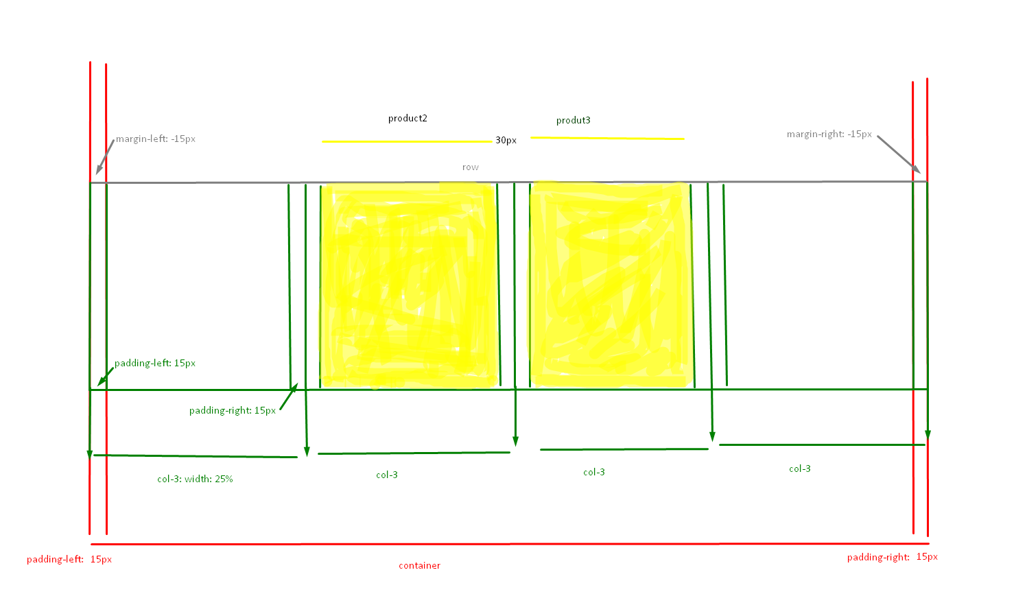 .col-3:width: 25%; padding-left: 15px; padding-right: 15px;