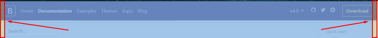 container cũng cách lề trái phải 15px, margin-left và right auto sẽ giúp container luôn căn giữa màn hình, tùy kích cỡ màn hình thiết bị mà container sẽ có width khác nhau, thay vì full hết chiều dài như container-fluid