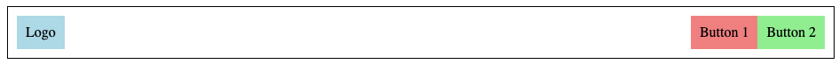 Chìa khóa ở đây là sử dụng flex-grow để tạo ra một thẻ div vô hình sẽ chiểm tất cả không gian còn lại và tạo ra sự tách biệt giữa các button và logo. Bạn có thể đạt được hiệu ứng tương tự với space-between hoặc space-around, nhưng sẽ cần nhiều thẻ div hơn.