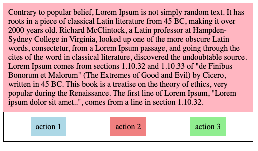 Ví dụ điển hình là thực hiện bố cục của một mục thẻ action. Bạn có thể tạo khoảng cách đều các item trên một hàng mà không gặp khó khăn gì với thuộc tính justify-content: space-around và flex-direction: row.