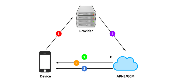 Ban đầu, app sẽ hỏi xem người dùng có cho phép thông báo khi app khởi động không. Tại thời điểm này, nếu người dùng cho phép thông báo, dịch vụ push notification ở trên sẽ được kết nối với từng thiết bị thông qua token có sẵn trên điện thoại. Dựa trên token này, các thông báo sẽ được gửi đến đúng thiết bị đích.