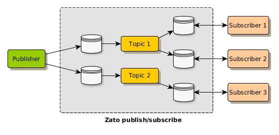 Khi publish 1 thông báo thì thông báo đó sẽ được gửi tới topic - nơi lưu trữ thông tin những thiết bị (subscriber) đã đăng kí topic đó. Dựa vào đó, topic sẽ gửi thông báo đó cho tất cả những thiết bị đã subsribe.