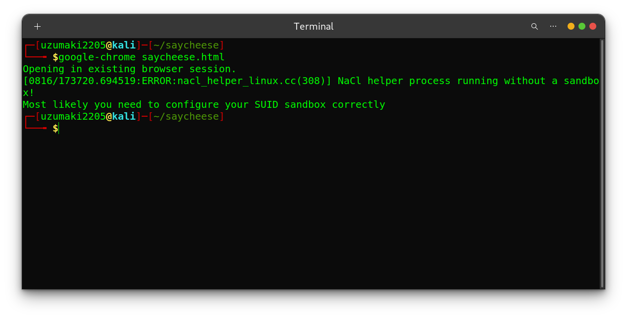 goole-chrome saycheese.htmlhoặc firefox saycheese.html![]()