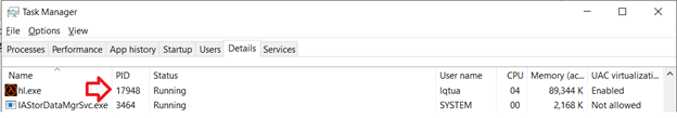 pid là process id của game Half Life, có thể lấy process id của game Half Life bằng cách vào Task Manager -> Details và nhìn giá trị cột PID của game Half Life.