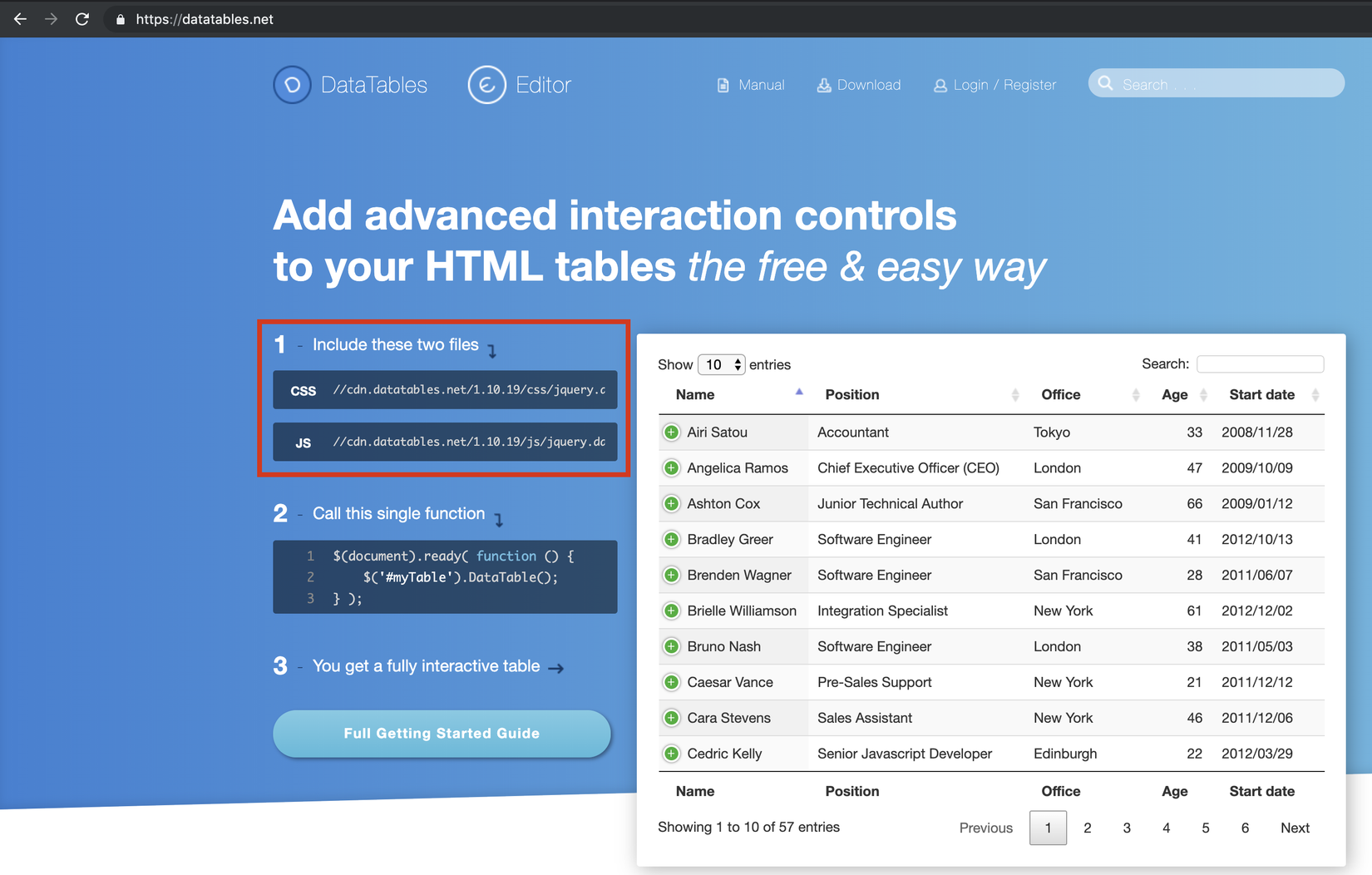- Datatables.net cung cấp một thư viện miễn phí để hiển thị dữ liệu dưới dạng tables HTML. Trang chủ của datatables.net có đề xuất sử dụng thư viện online cdn.datatables.net.