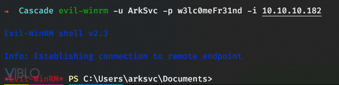 Vậy ta thu được mật khẩu của user ArkSvc:w3lc0meFr31nd