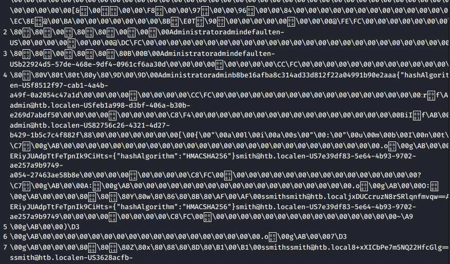 Thấy có một vài mã hash passwd, list ra. Đã sử dụng psexe.py với những hash này nhưng k được, sử dụng John để crack passwd thì lấy được 1 account tên là admin@htb.local:baconandcheese. Sử dụng tài khoản này để đăng nhập vào trang login lúc nãy thì đăng nhập được.