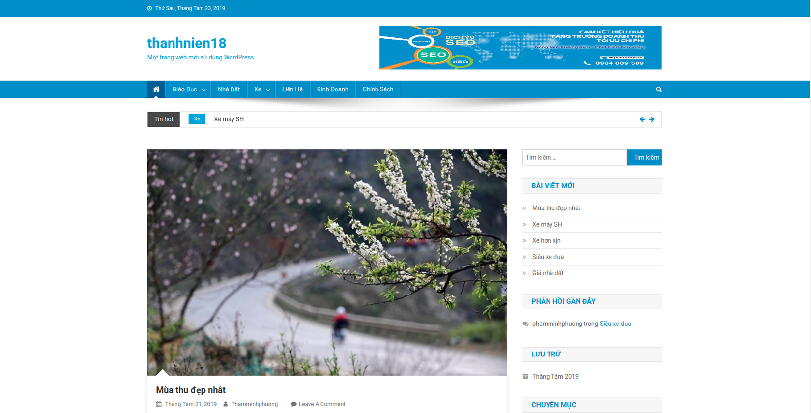 Đây là thành quả mình đã học làm wordpress 7 ngày nhé: