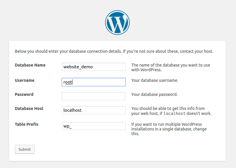 - Giao diện đầu tiên bạn nhìn thấy đó là cấu hình database trên website: