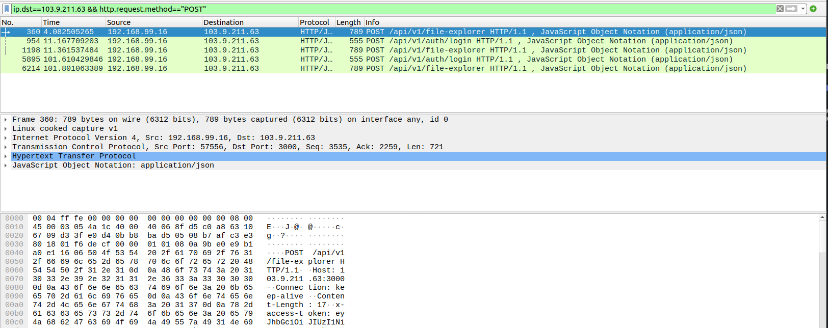 Tiếp đó mình click vào một record và thử đọc data của gói tin đó