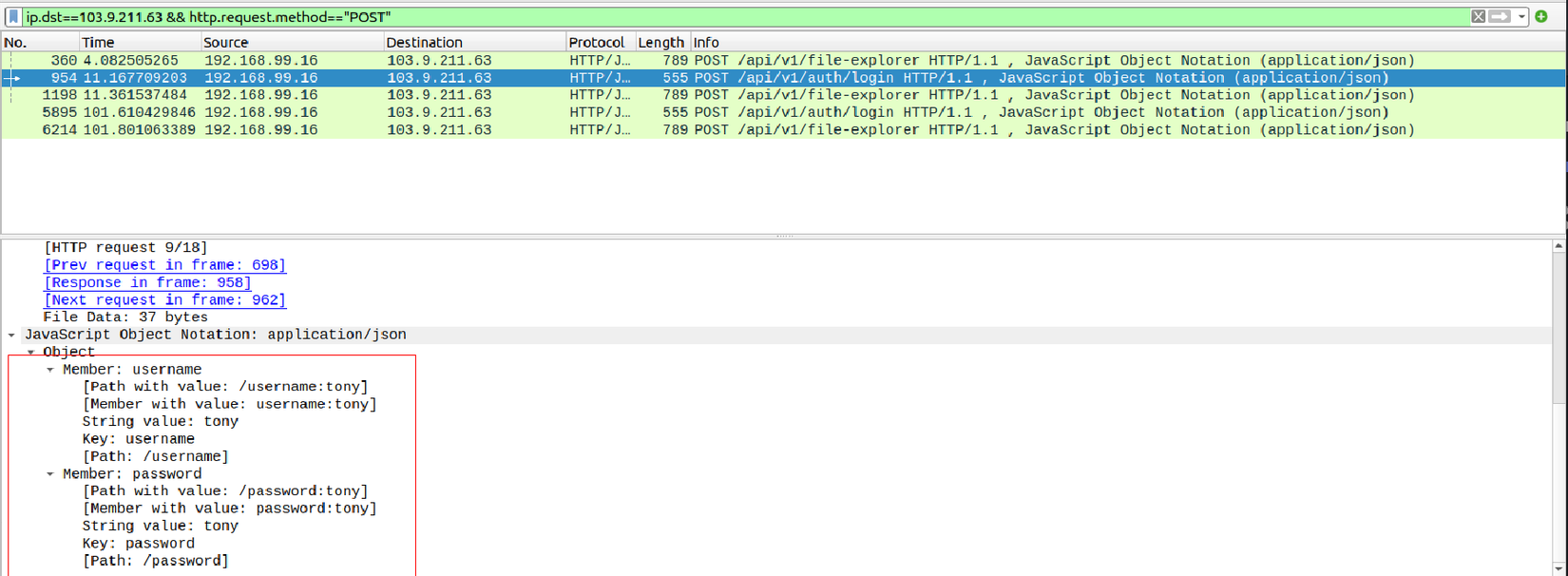 2.3. Tìm kiếm các gói tin gửi qua network lúc đăng nhập để đọc data