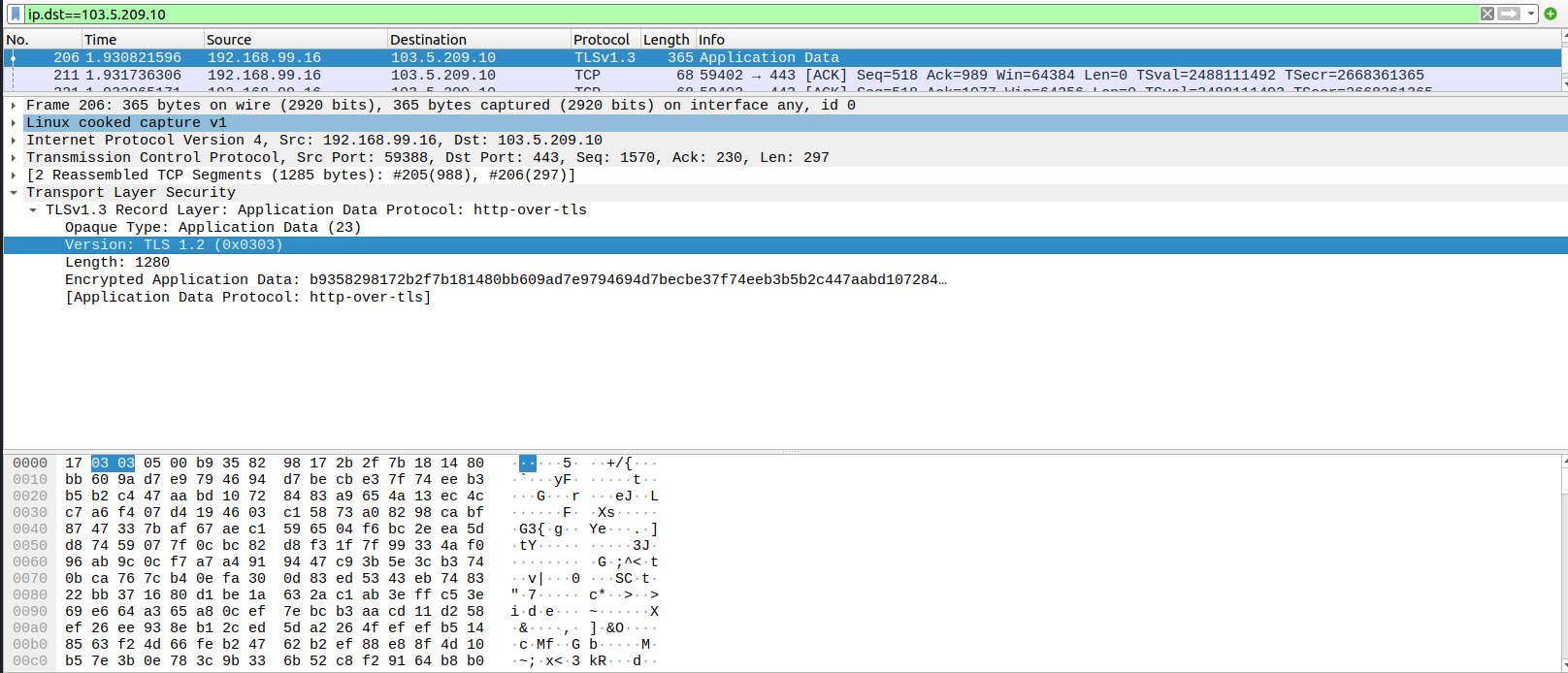 Mình thử tìm một vài gói tin để đọc data, nhưng thấy thật sự khó hiểu. Bởi vì data đó đã được encrypt