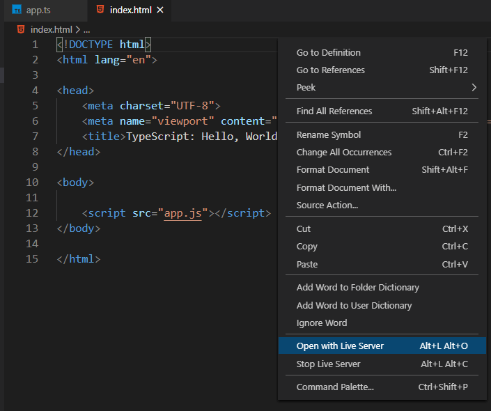 TypeScript compiler sẽ sinh ra một file mới là app.js và Live Server sẽ tự động reload nó trên web browser.