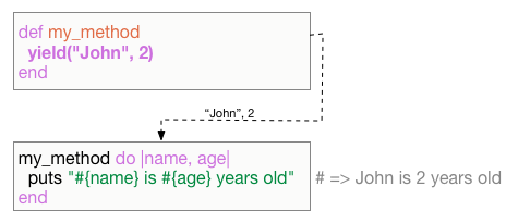 my_method{|name, age| puts "#{name} is #{age} years old"}