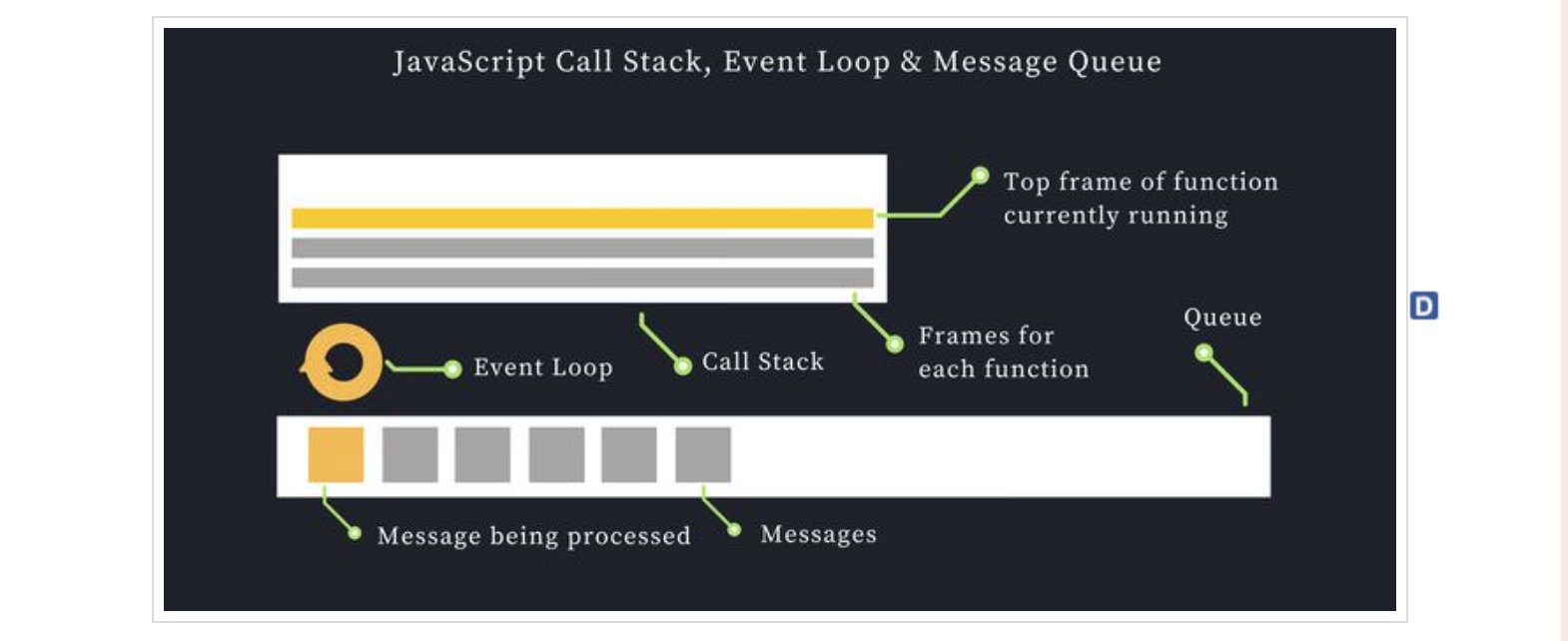 - Một vòng lặp (Event-loop). Event-loop làm nhiệm vụ điều phối việc lấy các message đang có trong queue: mỗi lần sẽ lấy 1 message ra khỏi queue để đem đi xử lí, trong quá trình xử lí thì event-loop sẽ đứng chờ cho tới khi message cũ được xử lí xong, sau đó sẽ tiếp tục lấy message mới trong queue để xử lí, và cứ lặp lại như thế.