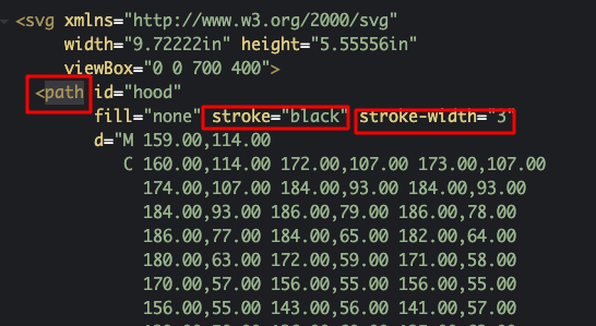 Hai thuộc tính cần lưu ý ở đây là stroke và stroke-width. Stroke quy định màu của phần tử, stroke-width quy định kích thước của phần tử.