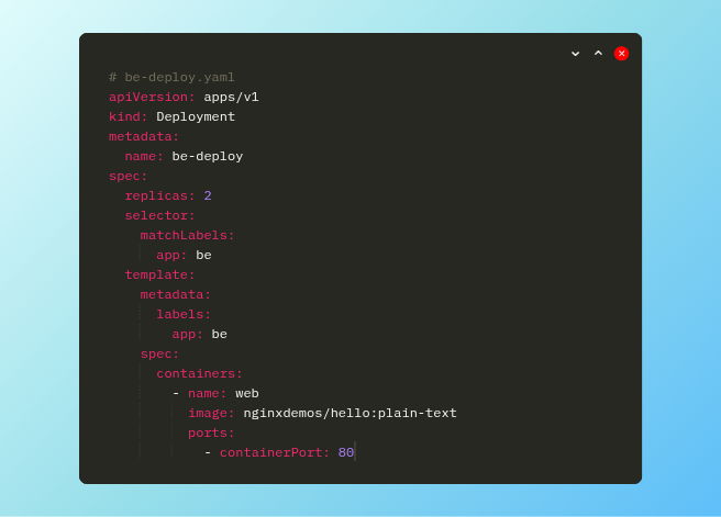 Ở đây mình dùng image nginxdemos/hello:plain-text là một demo image do team NGINX cung cấp, dùng để test nhanh NGINX và môi trường container/k8s. Nó đơn giản là nhận 1 request và trả về response dạng text.
