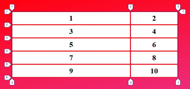 Grid tracks là khoảng trống giữa 2 grid line bất kỳ được đánh dấu thứ tự theo các hàng và cột. Các tracks được đánh dấu theo hàng và cột tương ứng từ trên cùng hoặc ngoài cùng bên trái.